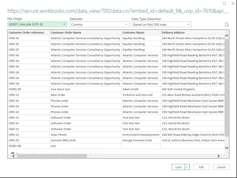 You will then see a preview of the data you’ll be bringing into Excel. Set the File Origin to 65001: Unicode (UTF-8) and the delimiter to comma, you also need to specify Data Type Detection, you may need Excel to display ALL of the data set or just the first 200 rows. You’ll then need to load the data: