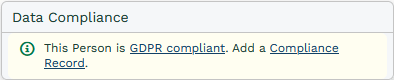 The Compliance record has been created in Workbooks to help you achieve and maintain compliance with data protection legislations such as General Data Protection Regulations (GDPR) and the EU ePrivacy Directive.