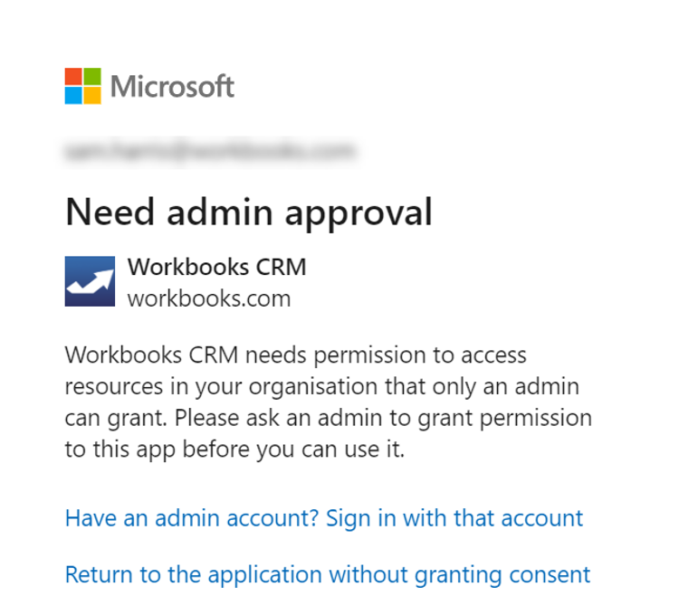 If you do not have appropriate authority in Azure to grant Workbooks permission to access user accounts, then you will see the below error. You will need to work with your IT Team / Azure Administrator to complete these steps to enable Microsoft authentication in Workbooks.
