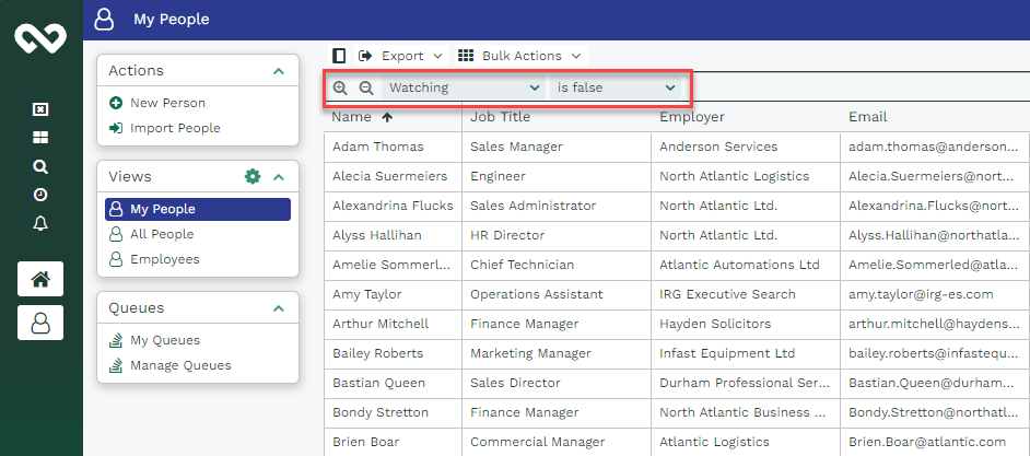 - It looks for a View called ‘Exchange Sync’ within People and Organisation records and synchronises the Records found in those Views.