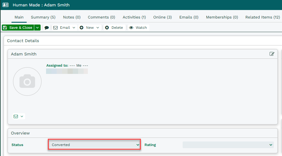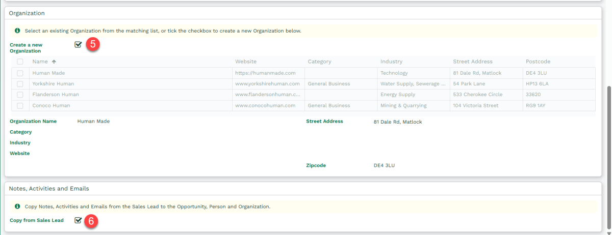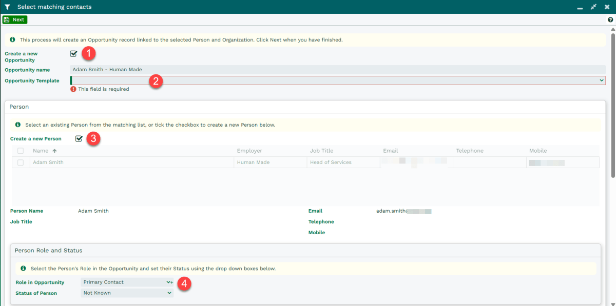 3. Create a new Person’ – Uncheck this if you can a see a relevant person record already exists for the Sales Lead, so that duplicates Person records are not created.
