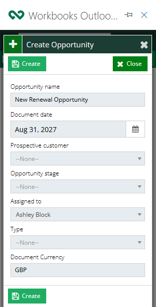 New Records can be created through the WESS Add-in allowing User to create records such as Opportunities, Organisations and Cases directly from Outlook. The Add-in can also be used to pull information directly from the email body to help populate details and save time during creation.