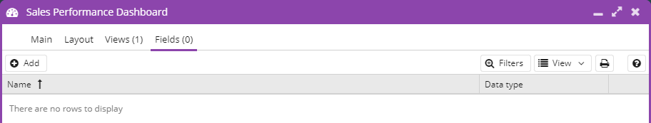 Within the Dashboard select the Fields tab, from here you will create the Dashboard Field.