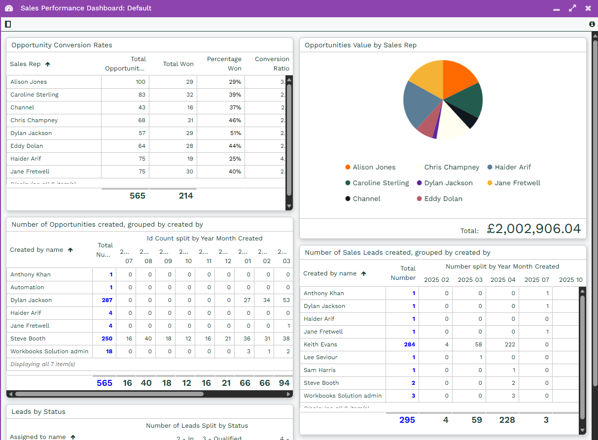 In this example we will build a Dashboard that gives you an overview of the performance of your Sales Team. The end result will look like this: