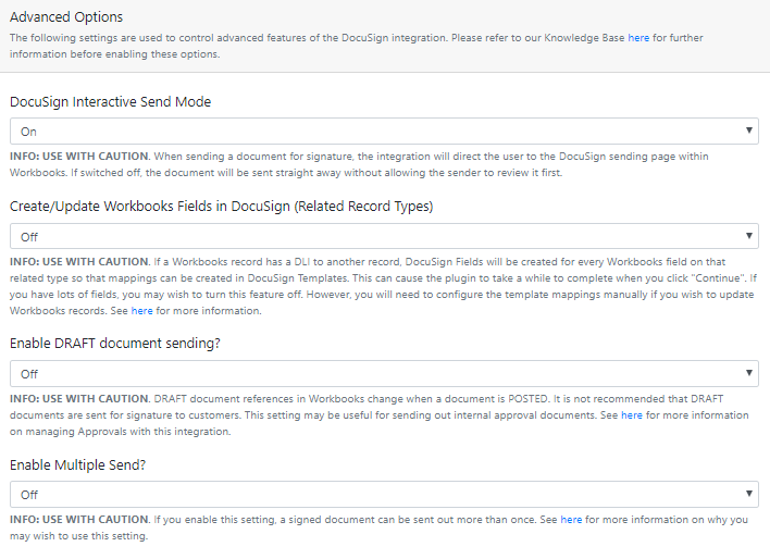 For this example the Interactive Send Mode is turned on so that the Draft Document can be reviewed before it is sent out, the rest of the settings can be turned off.