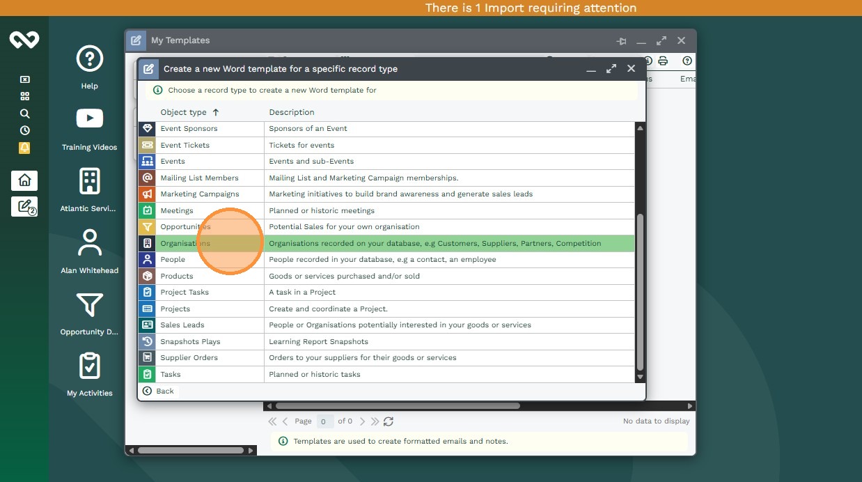 Now when you open a Record of that type you will see a Generate Word button along the toolbar next to the Generate PDF button, here you will be able to select any available Word Document.