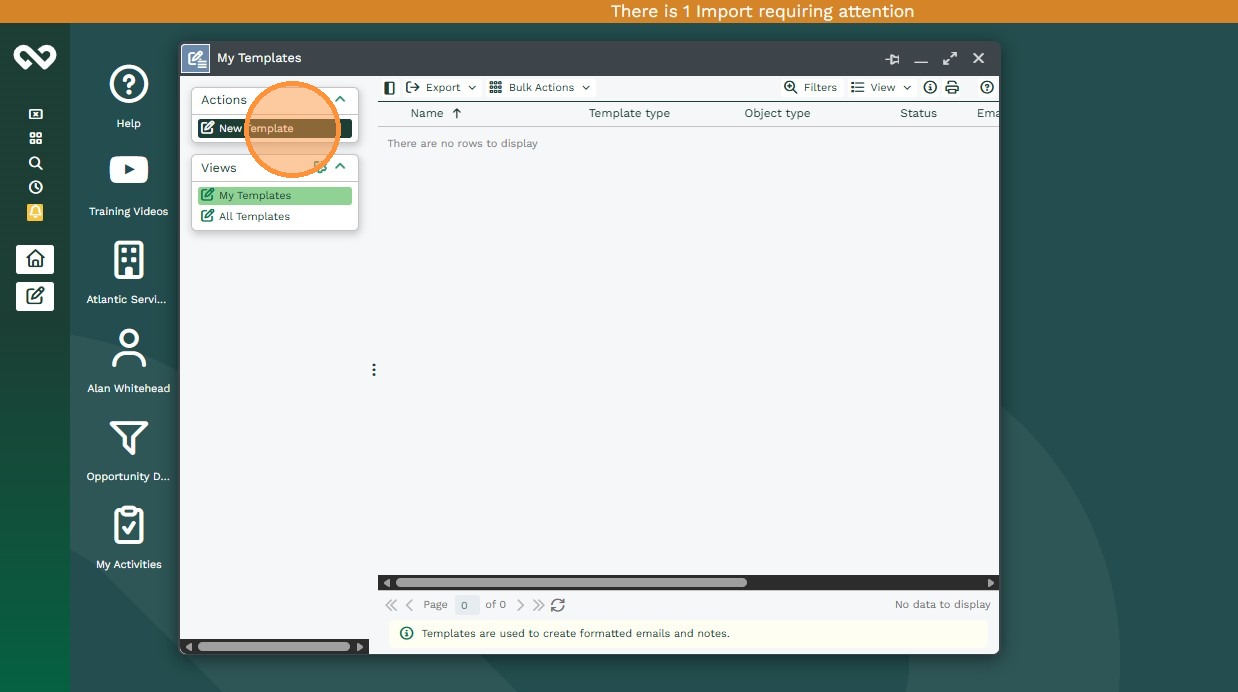 System Admins will be able to go from Start > Configuration > Templates > New Template.