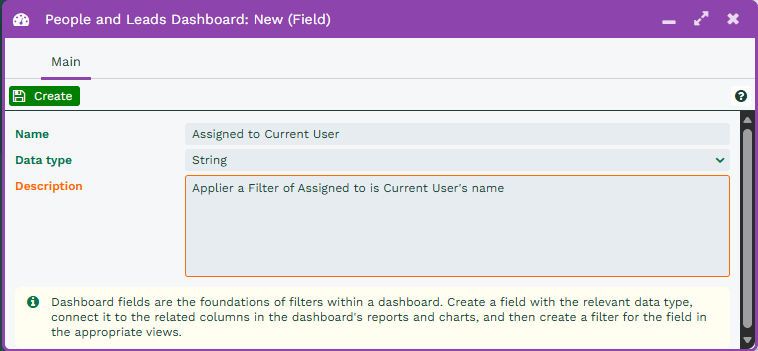 Example – setting up a Dashboard Field