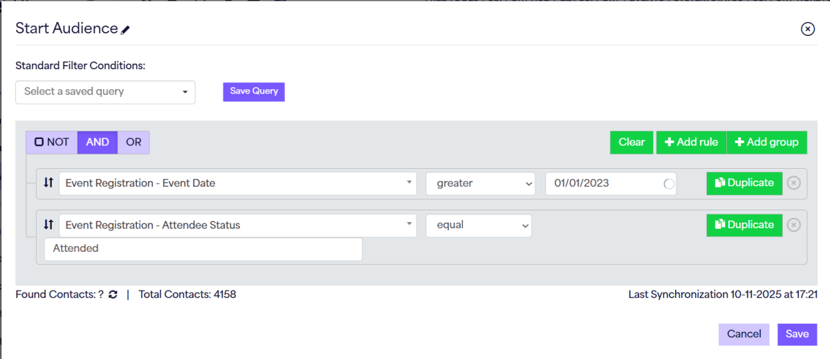 - Any other criteria to restrict the data to what’s relevant, e.g. if you only want Event Attendees from certain types of Events, or only Line items for certain Products.