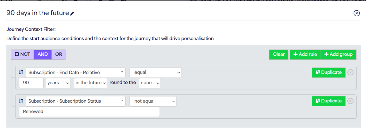 - Subscriptions – End Date – Relative equal 90 days in the future