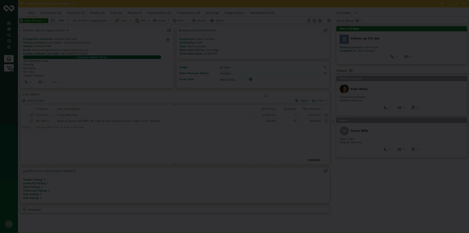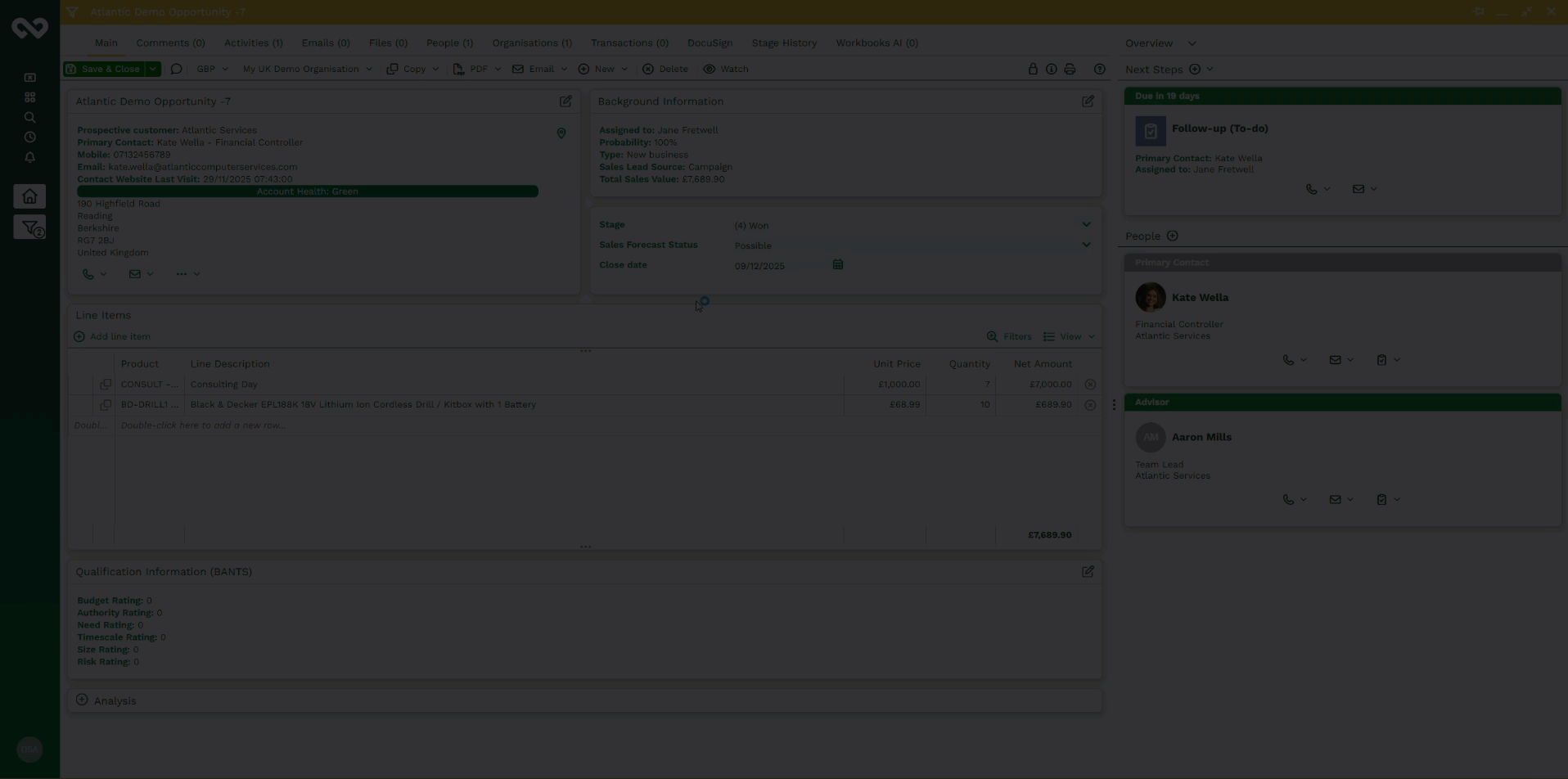 The tab is hidden by default, but can be enabled within Form Layouts. It’s also possible to display the Overview as a side panel within Form Layouts, this is extremely beneficial to allow for clear visibility of what’s happened, what’s next and key contacts related to the record without the need to change your view from the main tab: