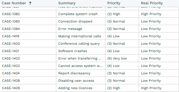 When a Case Record is a high priority and in status new, call it ‘Very High Priority’, if it is medium priority and status new, call it ‘Medium Priority’ if it is high Priority case but the status is not new, call it ‘High Priority’ – If none of these criteria are met, then it is ‘Low Priority’.