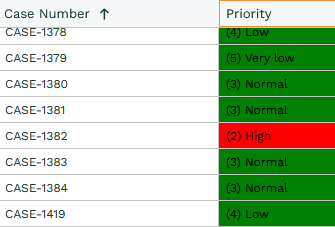 CASE WHEN priority_name = '(2) High' AND status_name = 'New' THEN 'font-weight: bold; background-color: red; color: black' WHEN priority_name = '(3) Medium' AND status_name = 'New' THEN 'background-color: yellow; color: black' WHEN priority_name = '(2) High' AND status_name != 'New' THEN 'background-color: red; color: black' ELSE 'background-color: green; color: black' END