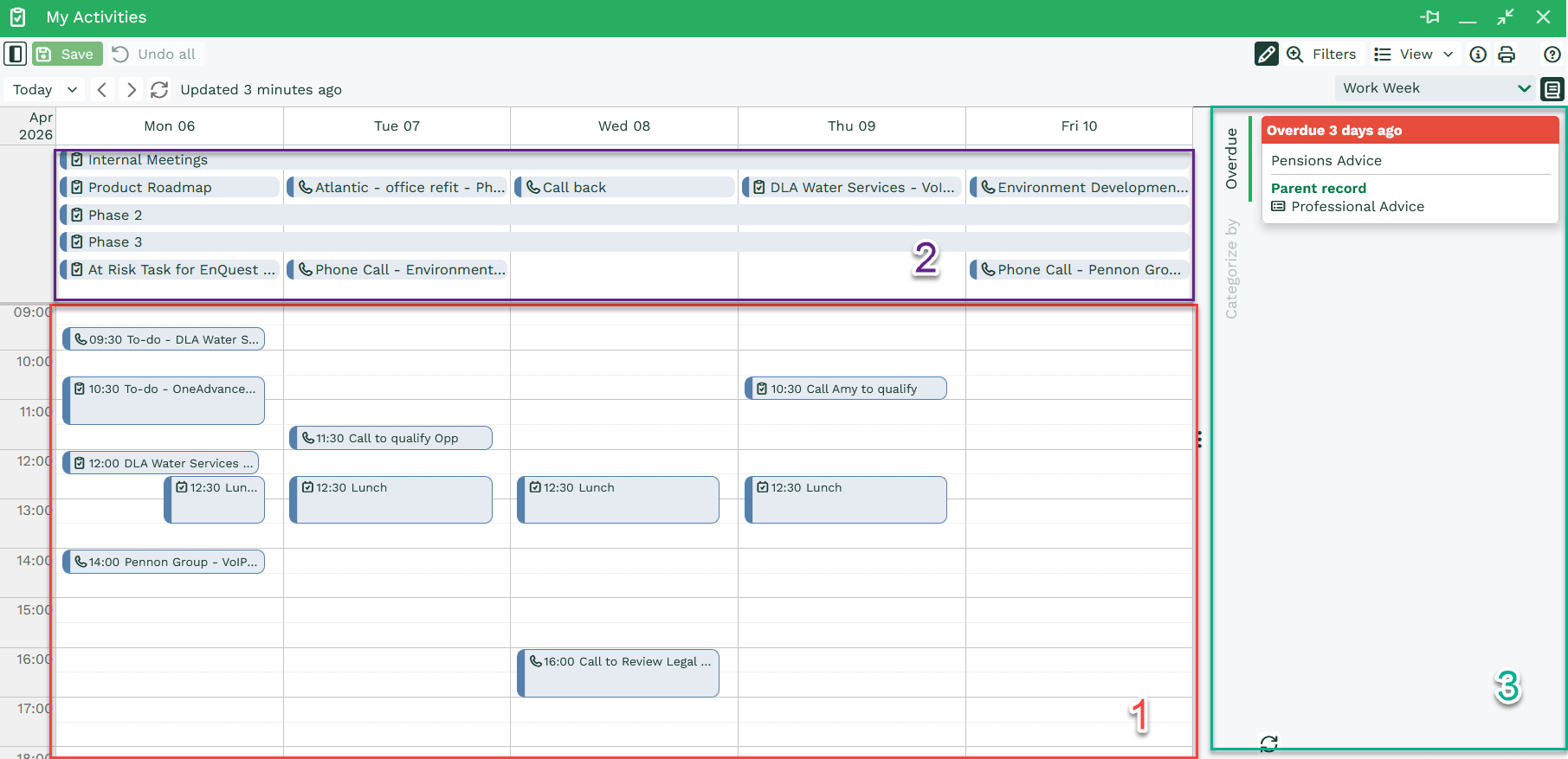 Take the below example in which a User has a number of a number of Activities due this week, but are yet to be scheduled.