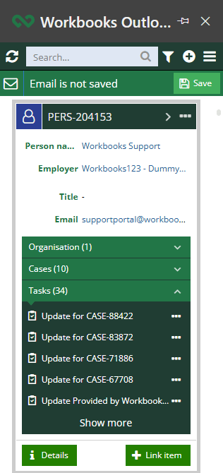 The WESS Add-in not only allows you to create and manage contacts directly from Outlook, but it also supports interaction with several other record types. From within the Add-in, you can log new tasks for contacts, review their existing cases, access employer details, link the contact to relevant record types and much more.