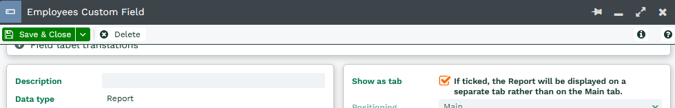 To incorporate a report as a Frame into the record view, select the custom field type ‘Report’.