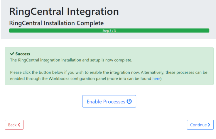 The final step of the integration is to enable all processes by clicking Enable Processes within the Plugin.