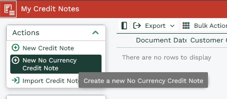 Within the Quote Landing Page you will now find the option to create a ‘New No Currency Credit Notes’. Clicking this will bring up a new Credit Note in which the Document Currency must be populated by the user, removing the possibility of an incorrect currency being defaulted to.