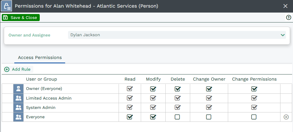 NOTE: A record is owned by the user to whom the record is assigned. If you assign the record to a Queue, the permissions can also be recalculated depending on the Queue configuration. You will need to configure your Permissions so that this situation is taken into account. See here for configuring Queues.