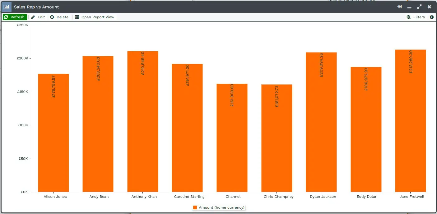 Once you have created a Bar Chart, it is possible to show the Targets from the Report on the Chart. By default, when creating a Bar Chart, the Targets will not be shown.