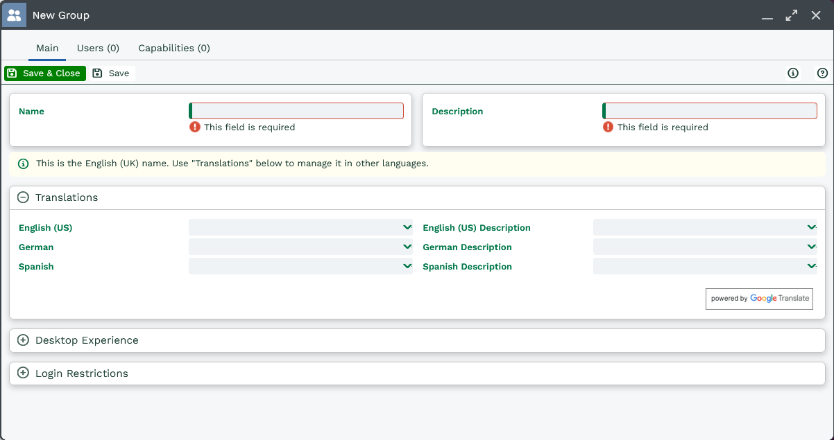 - Follow the path Start > Configuration > Users & Security > User Groups