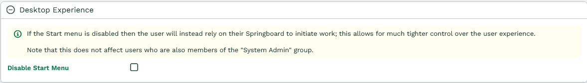 This prevents the whole menu from being opened. Instead, Users will need to work purely from their Springboard.