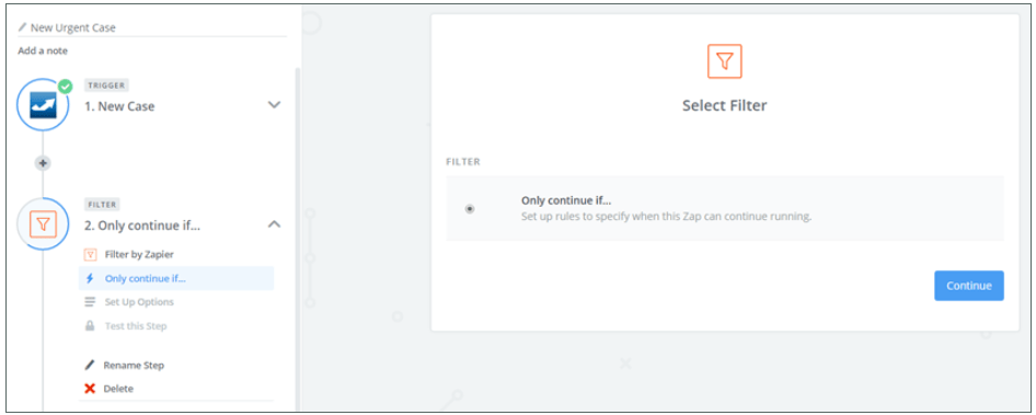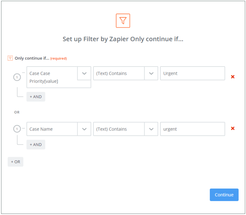 These rules will depend on the data that has been returned from a previous step. Below is an example of a filter for an ‘Urgent’ case.