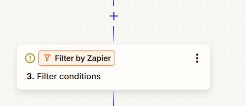 To add a Search or Filter step, or if you have already set up an Action in Step 2 and would like a different Action to take place first, click on the ‘plus’ button that appears between the two steps. You will be asked if you want to add a Filter or an Action.