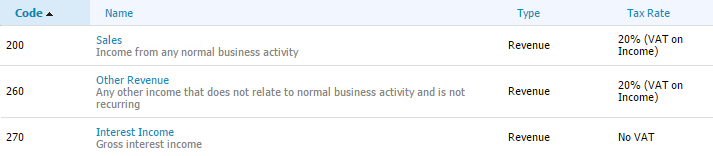 Xero Account Codes
